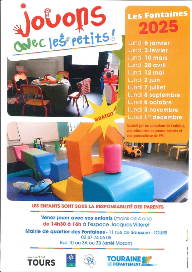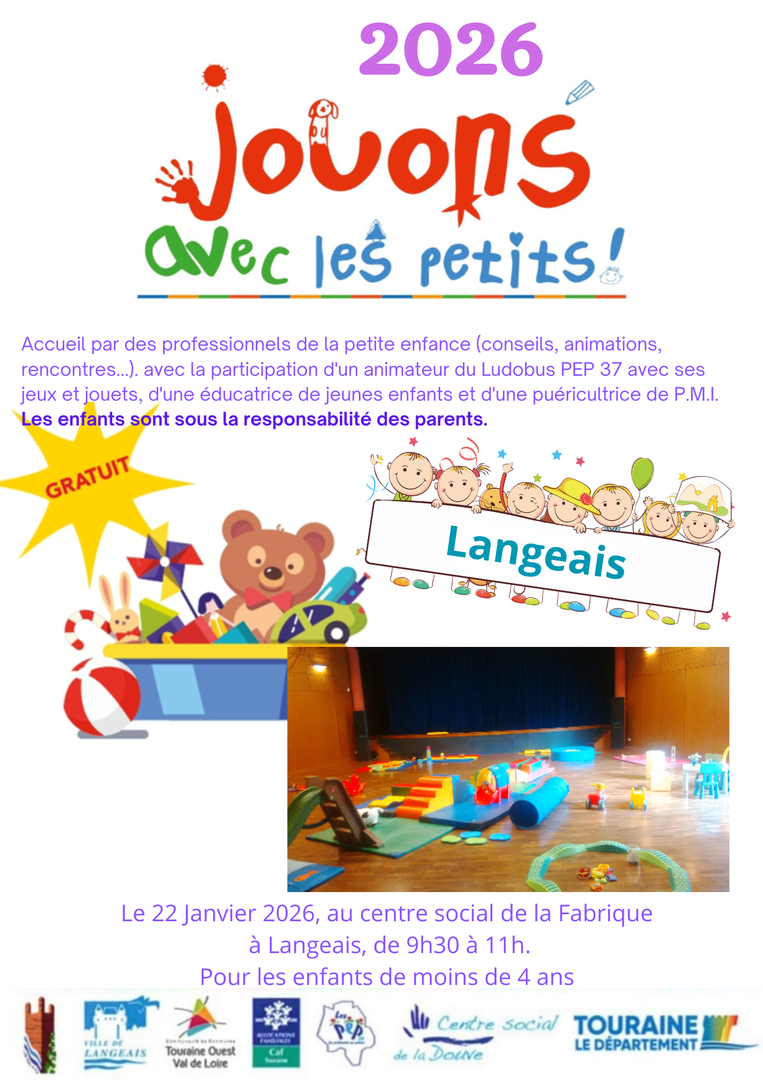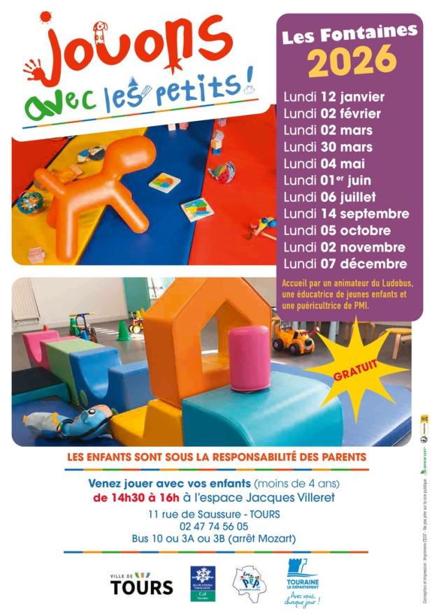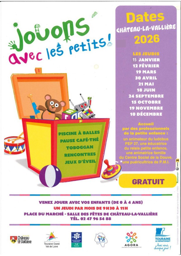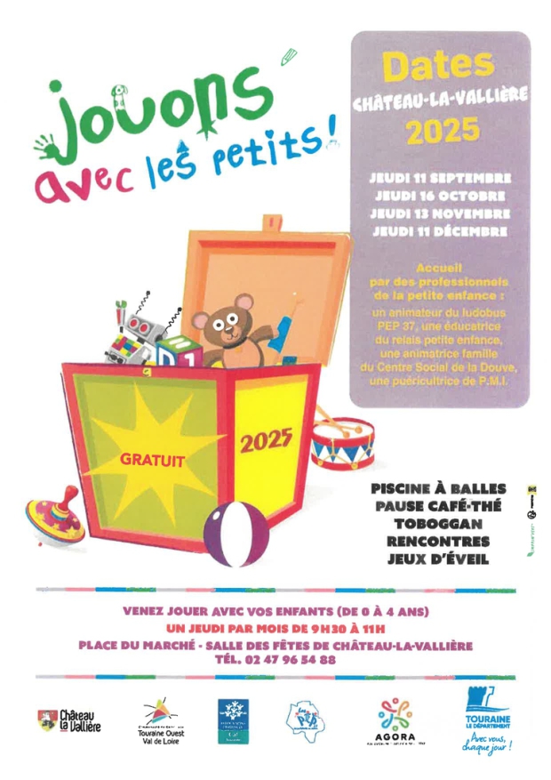“Jouons avec les petits” propose un espace de jeu libre convivial à destination des enfants de moins de 4 ans avec leurs parents ou un autre adulte familier (grands-parents, proches…).Ce lieu de rencontre favorise l’échange et les interactions en toute liberté.